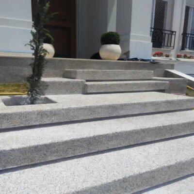 Devido à sua textura áspera, o granilite fulget é um piso antiderrapante, ideal para ambientes externos, que estão mais propensos à chuva, sem que se tornem escorregadios. Desta forma, o granilite fulget é indicado para calçadas ou entradas de locais comerciais, escadas externas, beiradas de piscinas, pois pela constante presença de água, estes locais necessitam de um piso completamente antiderrapante.
